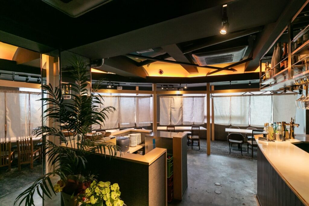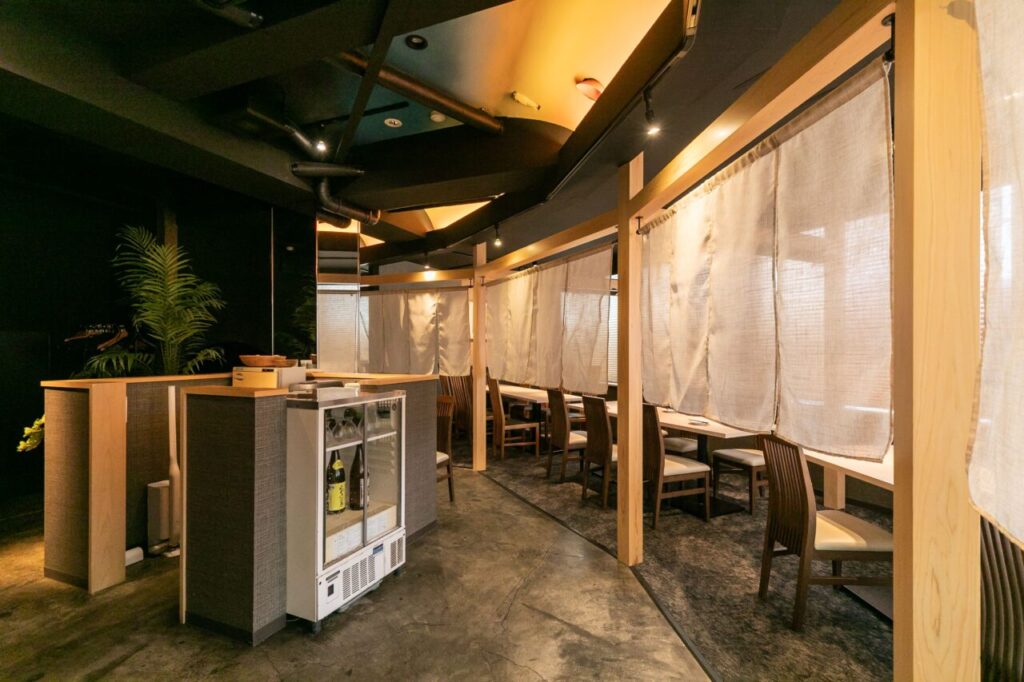 都会の喧騒を忘れさせる、バリの夕日をテーマにした大人の隠れ家。 幻想的に光る畳の個室や、洗練されたバーカウンターが、非日常の空間へとお客様を誘(いざな)います。